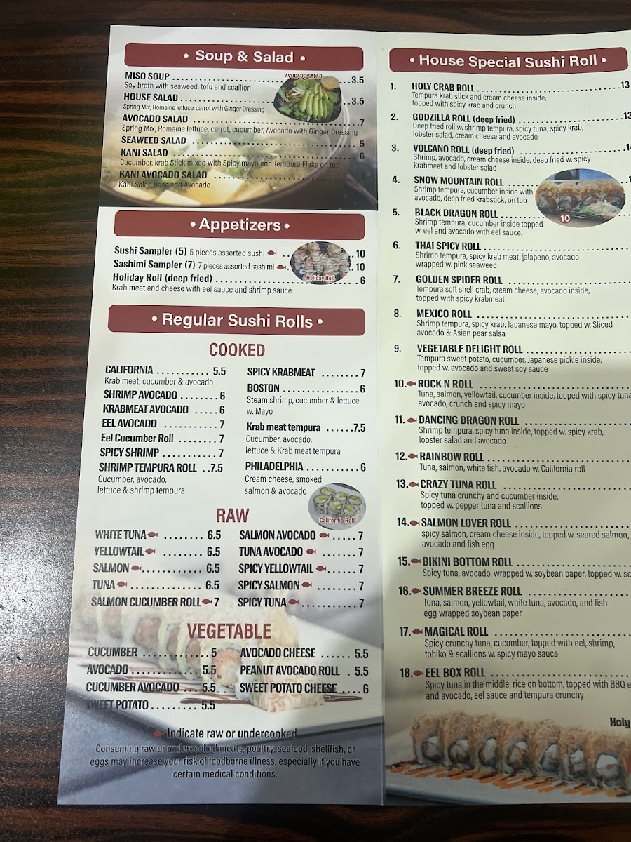Shrimp tempura, spicy tuna inside, topped w. spicy crab, lobster salad and avocado