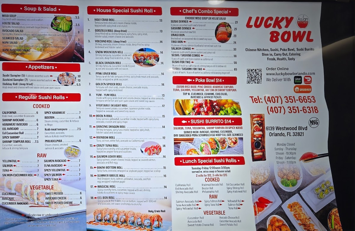 Tuna, salmon, yellowtail, cucumber inside, topped with spicy tuna, avocado, crunch and spicy mayo